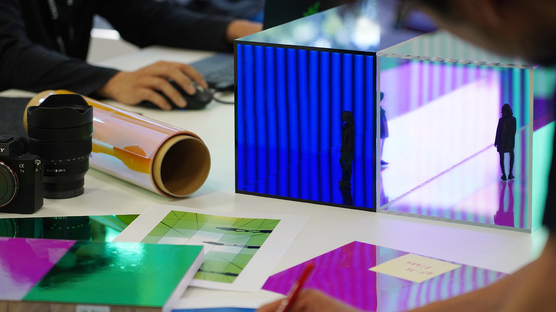INTO SIGHT is a life-sized media platform installation, where Sony Design plays on sensorial effects that transform simple boundary surfaces into an infinite vista through shifting light, colour and sound.