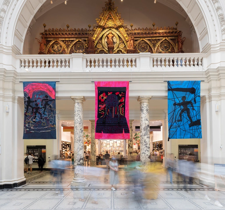Interdisciplinary artist Osman Yousefzada responds to the 75th anniversary of Pakistan with a display that explores themes of displacement, movement, migration and climate change. Across three V&A sites, his handcrafted textiles, wrapped objects and seating interventions showcase the traditional and contemporary techniques of the Pakistani and European workshop. Together, the installations present Osman’s unique and highly personal perspective on modernity and migration, offering a subtle and contemplative space to engage with the objects of his cultural heritage. Commissioned by the British Council, in partnership with the V&A and the Pakistan High Commission as part of the British Council’s festival season Pakistan/UK: New Perspectives - The 75th anniversary of Pakistan’s independence. Supported by The Rangoonwala Foundation. Special thanks to the Indus Valley School of Art & Architecture, Berengo Studio, Tevta Lahore and the RCA.